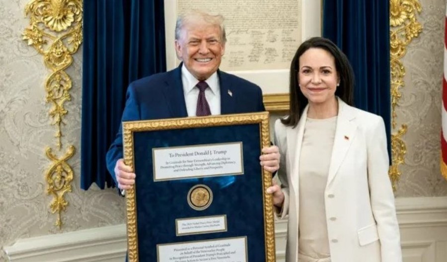 পরে হোয়াইট হাউস থেকে প্রকাশিত একটি ছবিতে দেখা যায়, ট্রাম্প ও মাচাদো পাশাপাশি দাঁড়িয়ে আছেন এবং ট্রাম্প একটি বড় সোনালি রঙের ফ্রেমে সংরক্ষিত পদকটি উঁচু করে ধরে আছেন। ছবির ক্যাপশনে বলা হয়, শক্তির মাধ্যমে শান্তি প্রতিষ্ঠায় অসাধারণ নেতৃত্বের জন্য প্রেসিডেন্ট ডোনাল্ড ট্রাম্পের প্রতি কৃতজ্ঞতা জানানো হয়েছে এবং এটিকে ভেনেজুয়েলার জনগণের পক্ষ থেকে দেওয়া ব্যক্তিগত কৃতজ্ঞতার প্রতীক হিসেবে উল্লেখ করা হয়েছে।