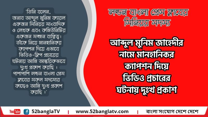 আব্দুল মুনিম জাহেদীর নামে মানহানিকর ক্যাপশন দিয়ে ভিডিও প্রচারের ঘটনায় দুঃখ প্রকাশ