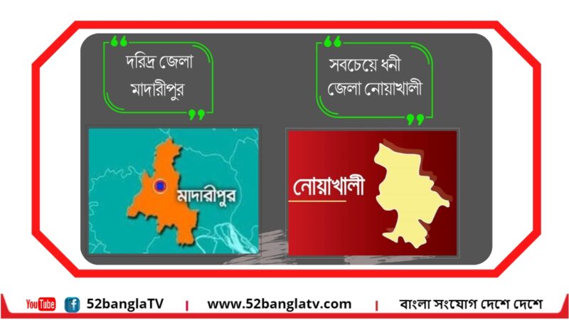 সবচেয়ে দরিদ্র জেলা মাদারীপুর, ধনী নোয়াখালী