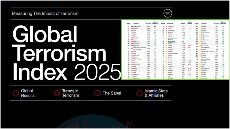 সন্ত্রাসবাদ সূচকে আমেরিকার চেয়ে এগিয়ে বাংলাদেশ