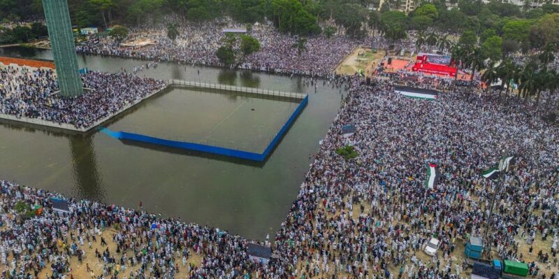 ইসরায়েলি বাহিনীর গণহত্যা ও নিপীড়নের বিরুদ্ধে প্রতিবাদ ও ফিলিস্তিনের জনগণের প্রতি সংহতি জানাল ঢাকার সোহরাওয়ার্দী উদ্যানে জমায়েত হওয়া হাজার হাজার