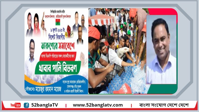 সিলেটে তারুণ্যের সমাবেশে যুবদল নেতা ময়েজের উদ্যোগে বোতলজাত পানি বিতরণ