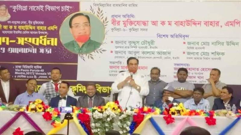 ইতালিতে সংসদ সদস্য আ ক ম বাহার উদ্দিন বাহারকে সংবর্ধনা দিয়েছে কুমিল্লাবাসী