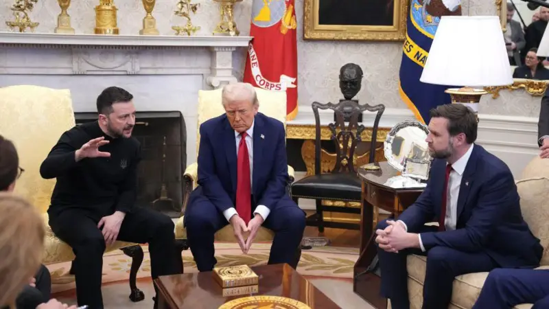 যুক্তরাষ্ট্রের প্রেসিডেন্ট ডোনাল্ড ট্রাম্প ও ভাইস প্রেসিডেন্ট জেডি ভ্যান্সের সাথে হোয়াইট হাউজে ওভাল অফিসের বৈঠকে সংবাদ মাধ্যমের সামনেই বাগবিতণ্ডায় জড়িয়েছেন