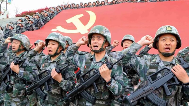 চীনের কমিউনিস্ট পার্টির সদস্য হওয়ার শপথ নেওয়ার অনুষ্ঠানে পিএলএ সদস্যরা। চীন বাংলাদেশসহ একাধিক দেশে সামরিক ঘাঁটি নির্মাণে আগ্রহী—এমনটাই দাবি করেছে