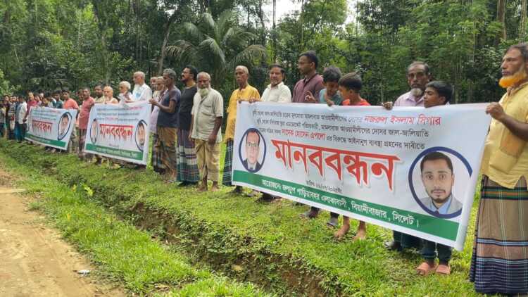 চাঁদা দাবির অভিযোগ, এলাকাবাসীর মানববন্ধন