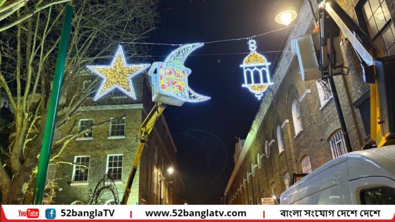প্রথমবারের মতো “ঈদ মোবারাক” লেখা লাইটে আলোকিত ব্রিকলেন-বাংলা টাউন