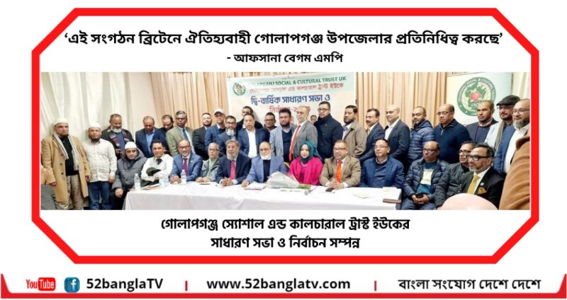 গোলাপগঞ্জ স্যোশাল এন্ড কালচারাল ট্রাস্ট ইউকে’র সাধারণ সভা ও নির্বাচন সম্পন্ন
