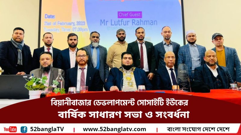 বিয়ানীবাজার ডেভলাপমেন্ট সোসাইটি ইউকের বার্ষিক সাধারণ সভা ও সংবর্ধনা অনুষ্ঠিত