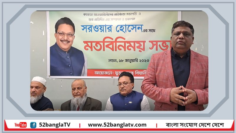 যুক্তরাজ্যস্থ  বিয়ানীবাজারবাসীর উদ্যোগে কানাডা আওয়ামীলীগের প্রতিষ্ঠাতা সভাপতি, শুভ প্রতিদিন এর সম্পাদক ও প্রকাশক সরওয়ার হোসেনের সাথে  এক মতবিমিয় সভার আয়োজন