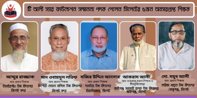 টি আলী স্যার ফাউন্ডেশন সম্মাননা পেলেন সিলেটের ২৪গুণী শিক্ষক