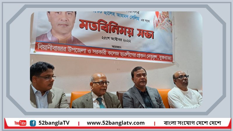 লন্ডনে কাউন্সিলার এডভোকেট ছালেহ আহমদের সাথে বিয়ানীবাজার উপজেলা ও সরকারী কলেজ ছাত্রলীগ নেতৃবৃন্দের মতবিনিময়