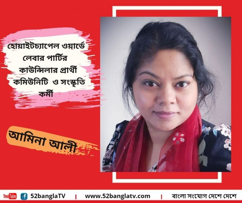 হোয়াইটচ্যাপেল ওয়ার্ডে লেবার পার্টির   কাউন্সিলার প্রার্থী  কমিউনিটি  ও সংস্কৃতি কর্মী আমিনা আলী