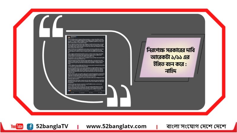 নিরপেক্ষ সরকারের দাবি আরেকটা ১/১১ এর ইঙ্গিত বহন করে : নাহিদ