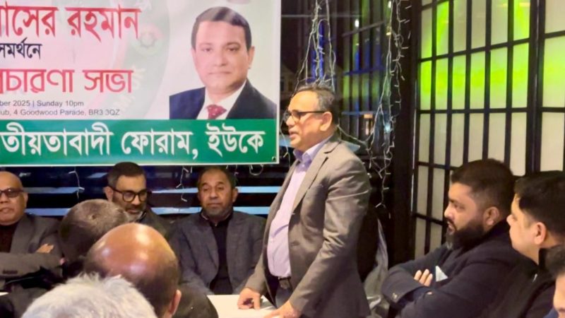 এম নাসের রহমানের সমর্থনে লন্ডনে নির্বাচনী প্রচারণা সভা অনুষ্ঠিত