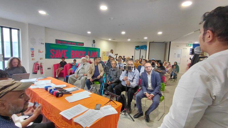টাওয়ার হ্যামলেটস কাউন্সিলের সাবেক কাউন্সিলার ও সেইভ ব্রিকলেন গ্রুপের ক্যাম্পইনার পুরু মিয়ার সঞ্চালনায় অনুষ্ঠিত সংবাদ সম্মেলনে লিখিত বক্তব্য পাঠ করেন শেফিল্ড বিশ্ববিদ্যালয়ের শিক্ষক ড. তানজিল শফিক।
