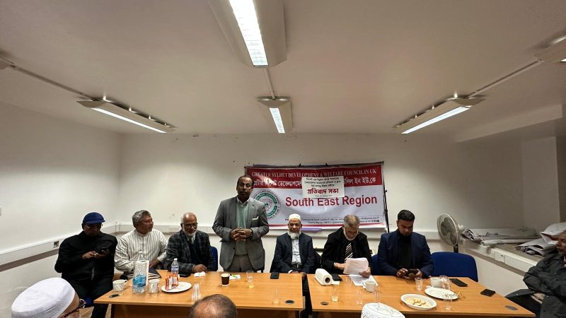 গ্রেটার সিলেট ডেভেলপমেন্ট এন্ড ওয়েলফেয়ার কাউন্সিল ইউকে সাউথ ইস্ট রিজিওন-এর উদ্যোগে সিলেট-এর উন্নয়ন কাজে সরকারের বৈষম্যমূলক আচরণের প্রতিবাদ ও দ্রুত কর্ম সম্পন্ন করার দাবিতে এক প্রতিবাদ সভা গত ২২অক্টোবর জিএসসির কেন্দ্রীয় কার্যালয়ে অনুষ্ঠিত হয়। উক্ত সভায় সভাপতিত্ব করেন সংগঠনের চেয়ারপার্সন খলিল আহমদ কবীর।