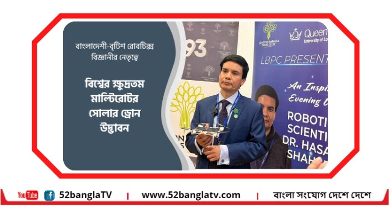 রোবটিক্স বিজ্ঞানী ড. হাসান শহীদের নেতৃত্বে কুইন মেরি ইউনভার্সিটি অব লন্ডনে বিশ্বের ক্ষুদ্রতম মাল্টিরোটর সোলার ড্রোন উদ্ভাবন