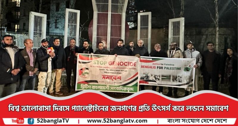 বিশ্ব ভালোবাসা দিবসে প্যালেষ্টাইনের জনগণের প্রতি উৎসর্গ করে লন্ডনে সমাবেশ