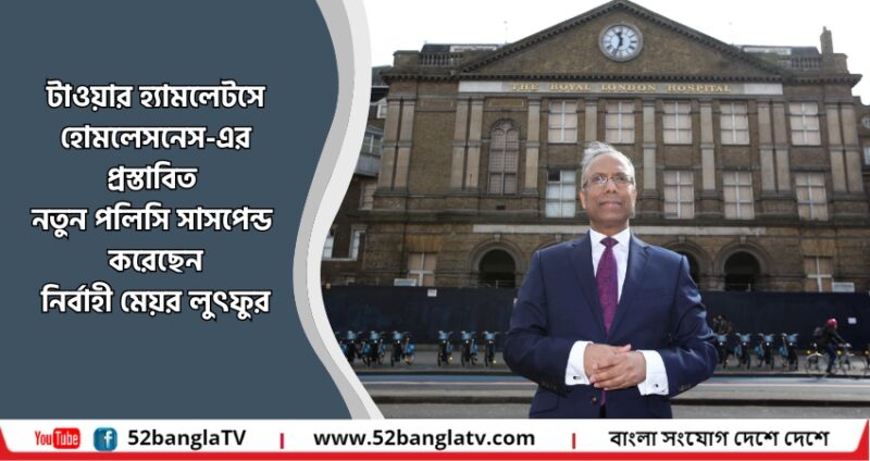 টাওয়ার হ্যামলেটসে হোমলেসনেস-এর প্রস্তাবিত নতুন পলিসি সাসপেন্ড করেছেন নির্বাহী মেয়র লুৎফুর