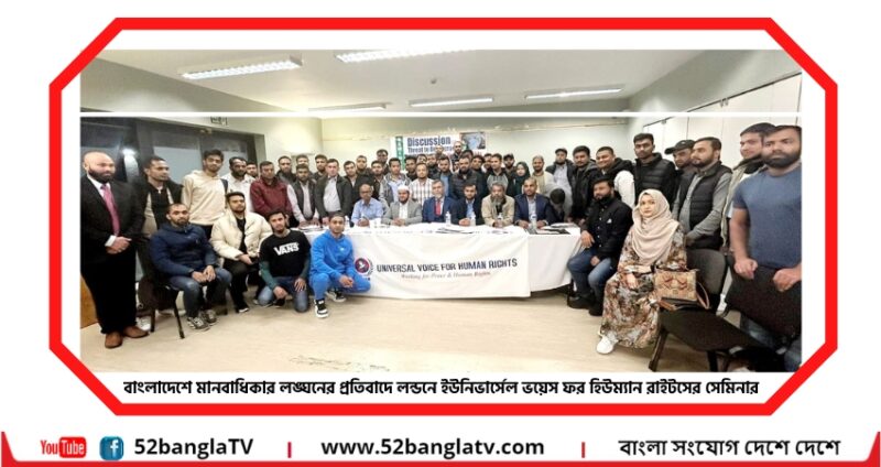 ইউনিভার্সেল ভয়েস ফর হিউম্যান রাইটসের উদ্যোগে বাংলাদেশে মানবাধিকার লঙ্ঘন ও গণতন্ত্রের পুনরুদ্ধারের দাবিতে এক সেমিনার গত ১জুলাই পূর্ব লন্ডনের মাইক্র